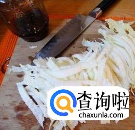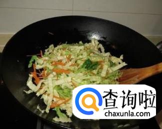 锅中加油,油八分热时加入豆瓣酱,老抽适量,葱姜蒜适量爆炒,然后加入我们备好的白菜丝,翻炒均匀。
