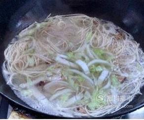 水开时加入挂面,煮大概三分钟,加盐,味精,麻油适量,搅匀后起锅