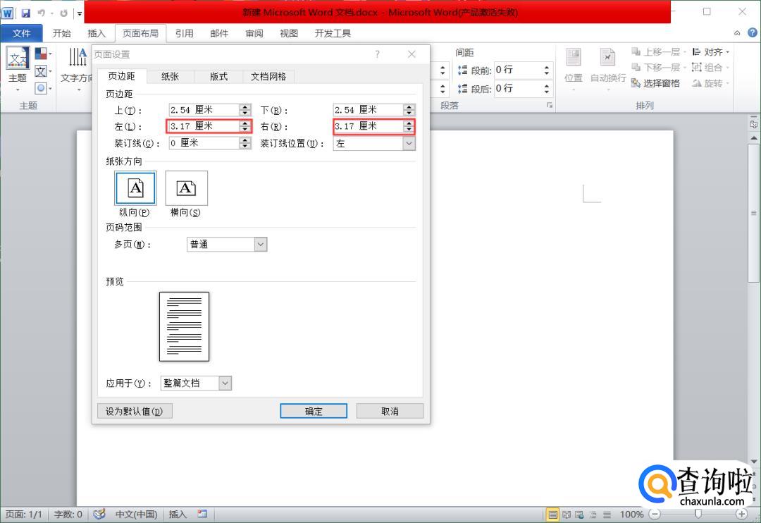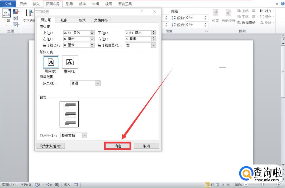 比如小编在这儿将其左右边距均设置为6厘米。