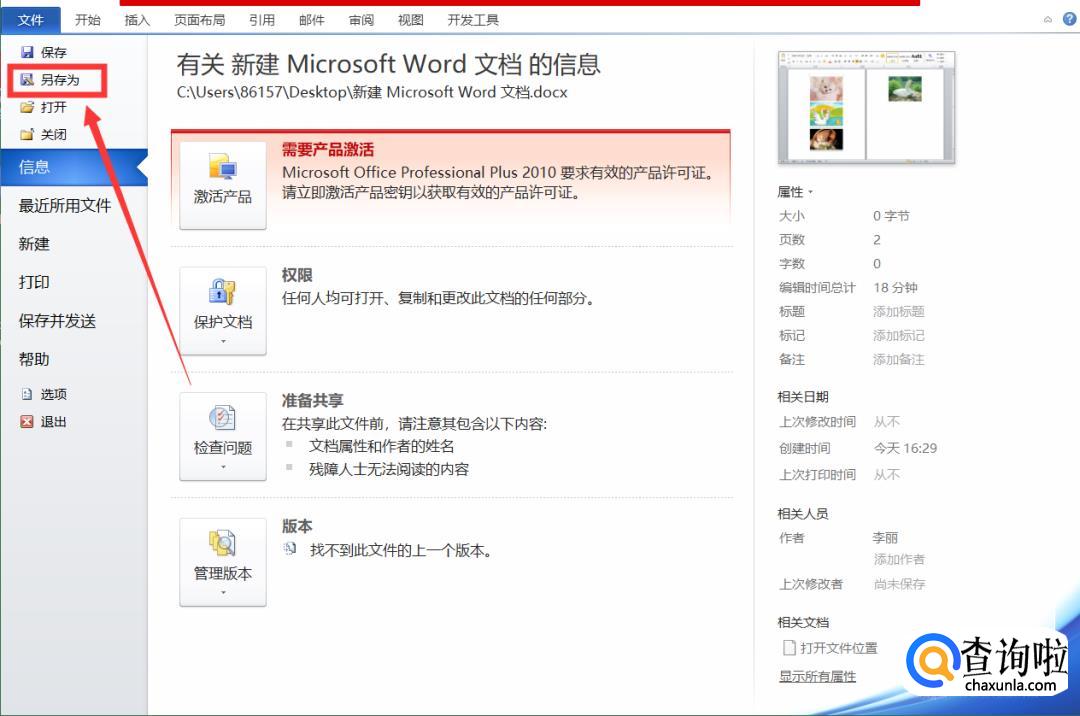 在【文件】选项卡中点击【另存为】。