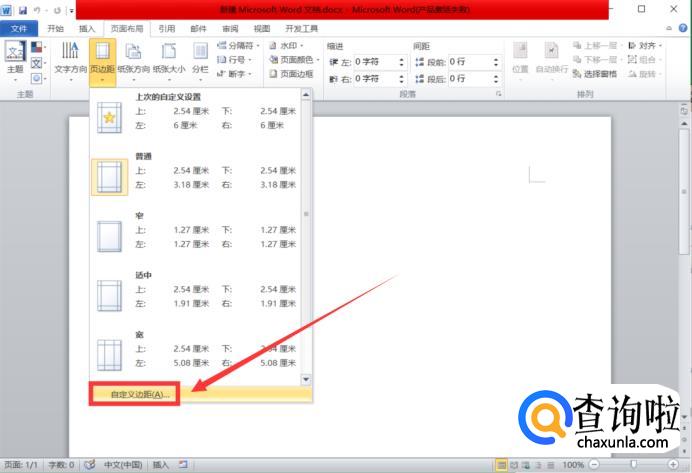 点击【页边距】之后我们点击【自定义边距】。