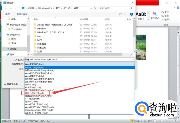 然后我们将文档的保存类型改为网页。