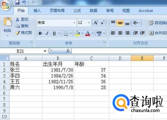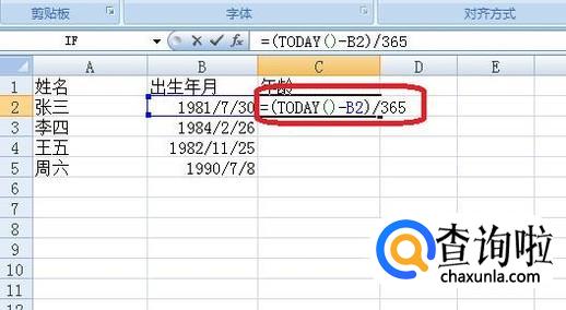 然后我们下拉单元格,复制格式,得到其他人的年龄。