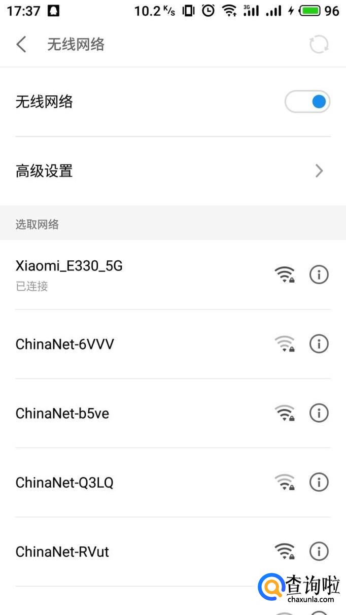 进入手机系统设置中的无线网络界面,点击想要进行设置的网络进入详情界面。