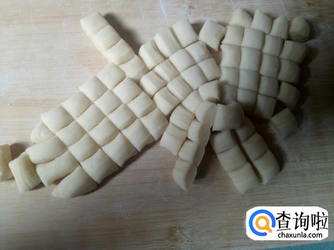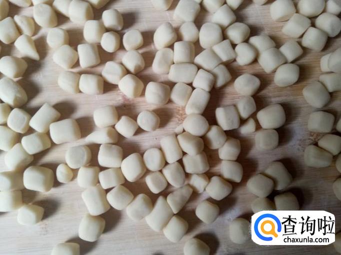 搓好以后,用刀切成大约一厘米左右大小均匀的小剂子。