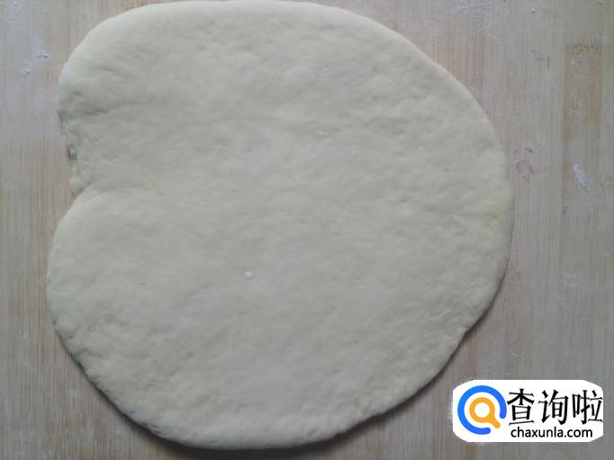 发酵好的面团反复揉搓进行排气,然后擀成略厚一点的面饼。
