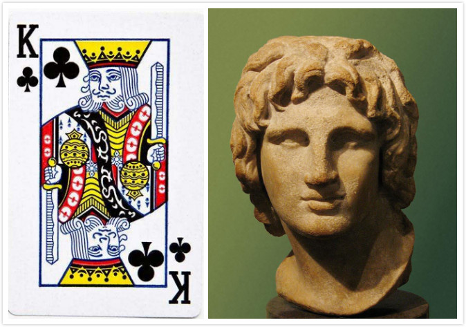 梅花K:亚历山大大帝,马其顿帝国国王,20岁继承王位,是个极有野心的人,想统治世界。先在希腊建立统治地位,后灭波斯帝国,横跨欧、亚、非建立起一个以巴比伦为首都的庞大帝国。