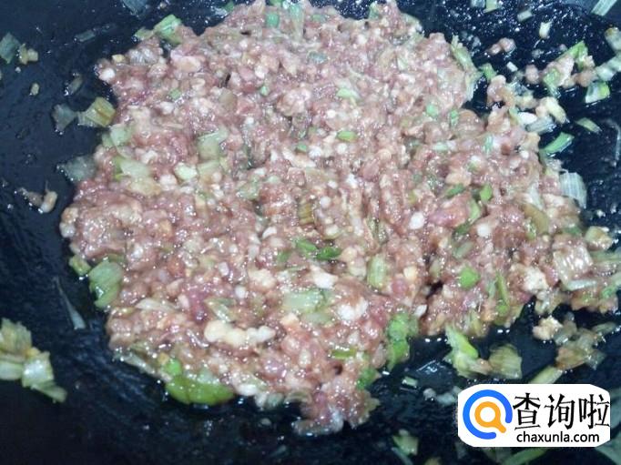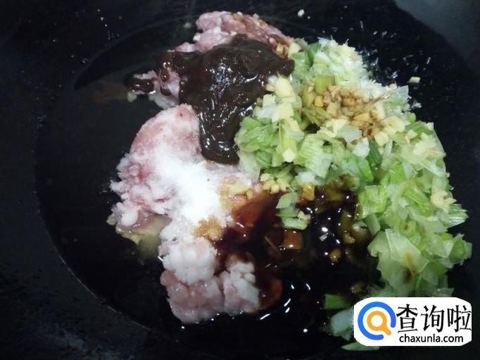 猪肉切成碎末,也可以购买现成的肉馅,我用的是购买现成的肉馅。