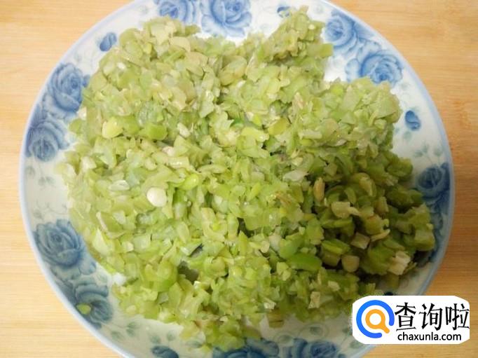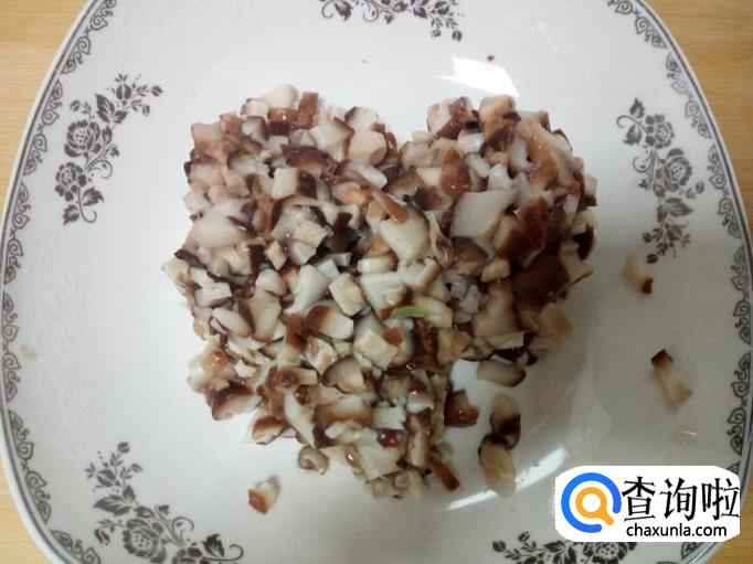 把沥干水分的芸豆,香菇,切成碎末,攥干水分。
