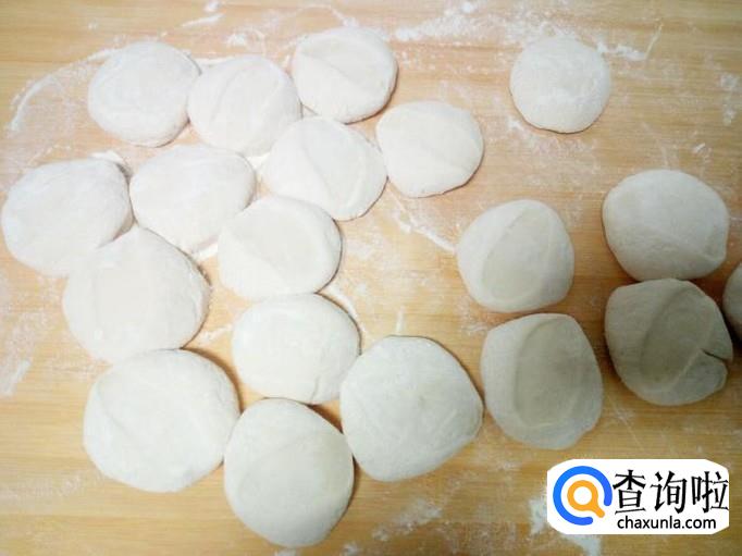 把发好的面,用手揉匀,然后搓成长圆条,切成剂子,用手按压成小饼状,再擀成面皮。