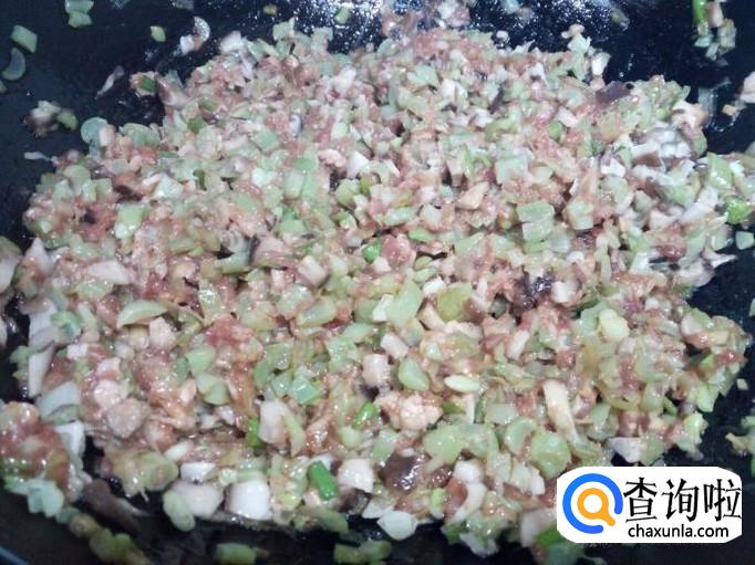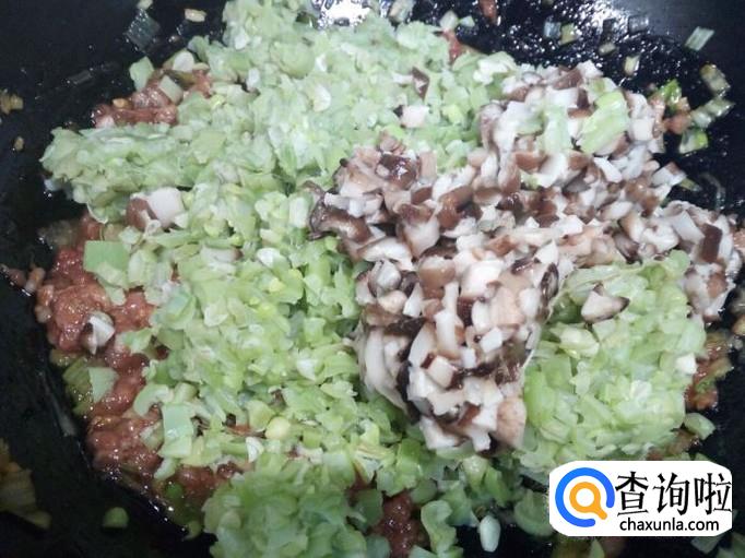 然后放入芸豆末,香菇末,搅拌均匀,拌和成包子馅。