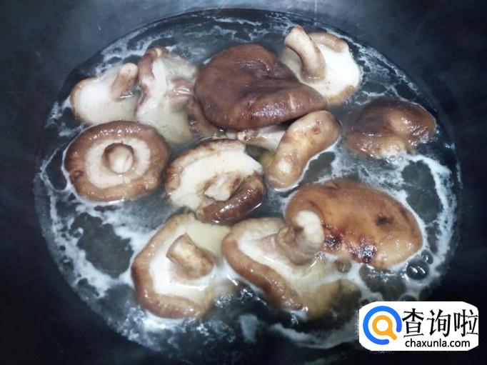 香菇用水焯一下,水开后入锅三分钟捞出,用冷水过凉,沥干水分。