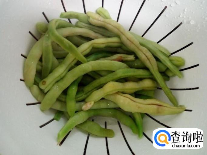 芸豆掐去两头,用水清洗干净,控干水分。香菇收拾清洗干净,控干水分。