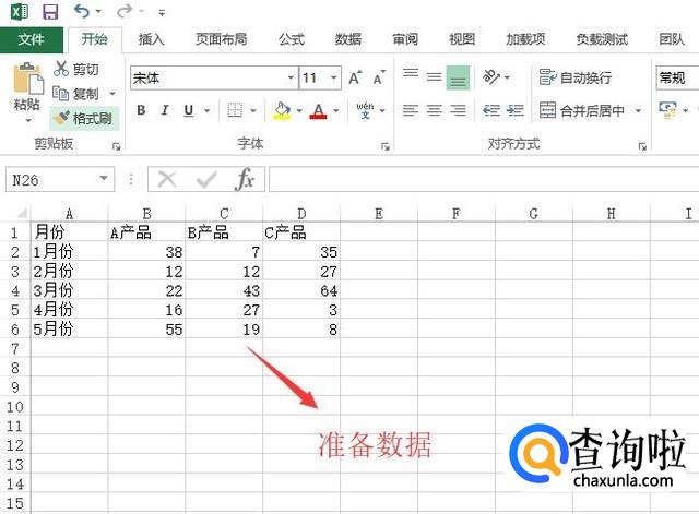 首先打开Excel软件,准备好要操作的数据,注意数据要按如下图所示的方式制作