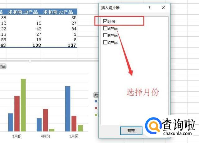 在弹出的插入切片器选项界面中我们选择月份,然后点击确定按钮,如下图所示