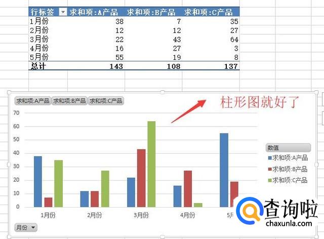 然后回到Excel界面中,我们就可以看到柱形图创建好了,如下图所示