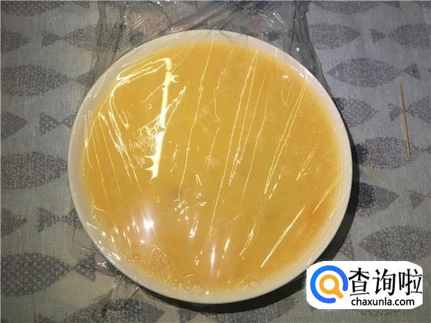 用保鲜膜包住小碟子,再用牙签在保鲜膜上刺几个洞。