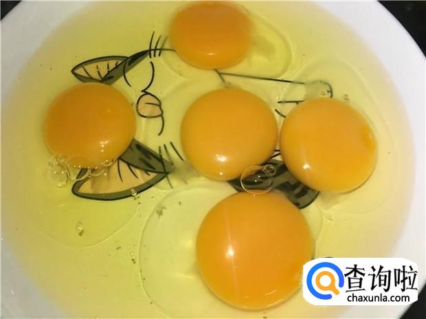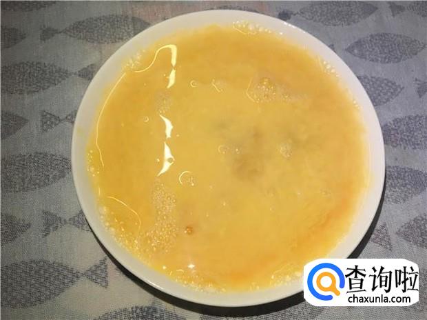 鸡蛋打入碗中,加入适量的盐,用筷子朝着一个方向均匀打散。