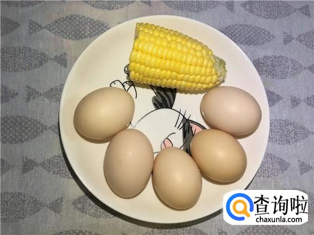 把食材准备好,新鲜的土鸡蛋5颗,玉米半截。