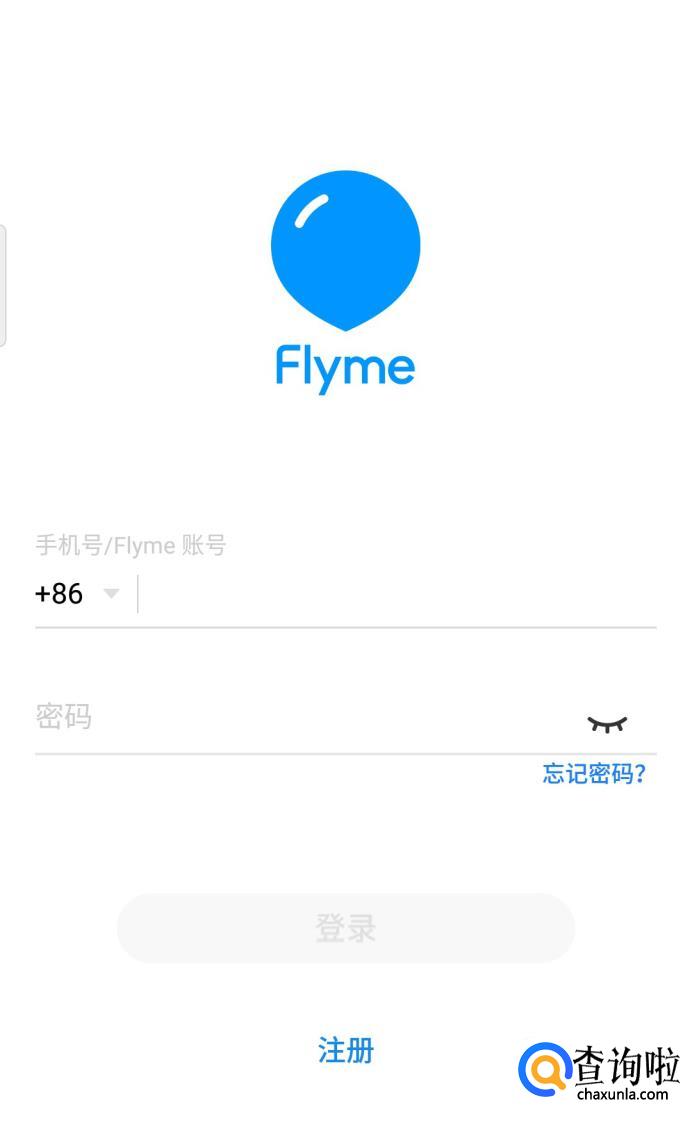 输入你的flyme账号和密码,如果没有可以先点击下方注册