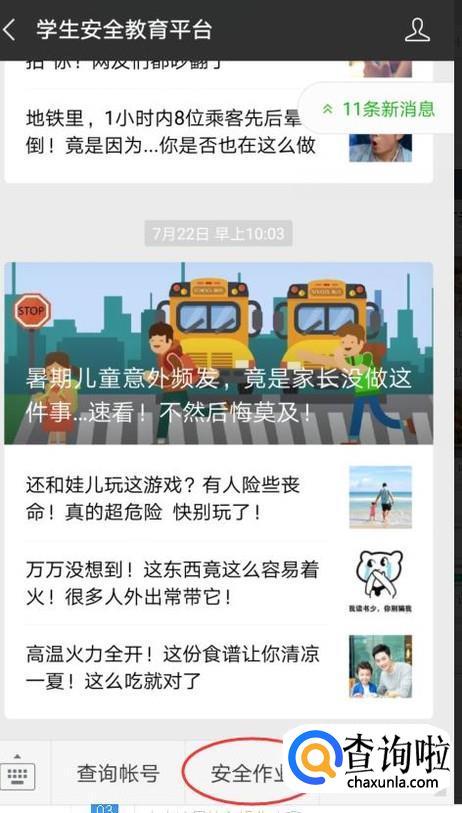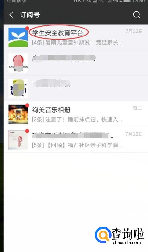 进入微信订阅号,再找到安全教育平台。如图所示。