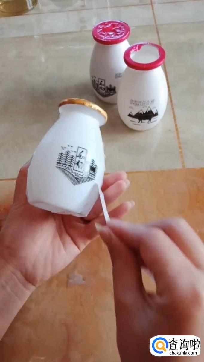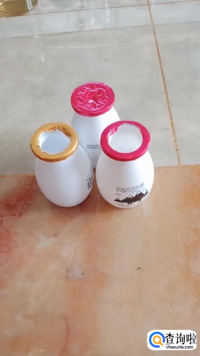 准备三个酸奶瓶,用水冲洗干净后,将酸奶盖去掉备用。