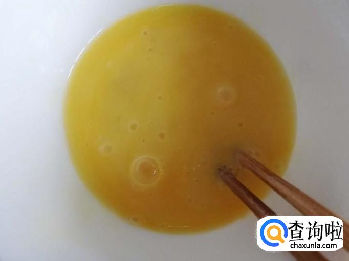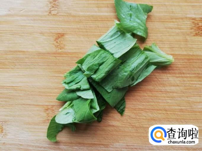 鸡蛋打成蛋液,青菜取菜叶子部分洗干净切段
