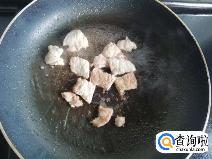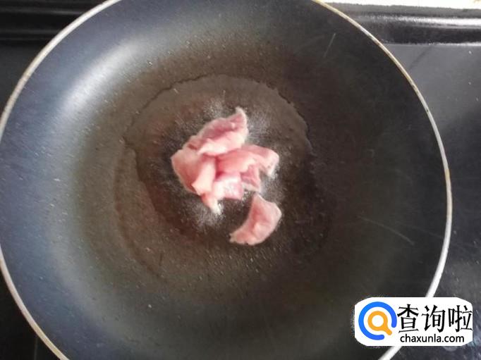 锅烧热,加入少许油,凉油下入肉片翻炒,炒至肉片变色,然后转大火,倒入半勺黄酒去腥