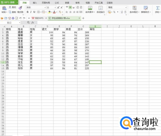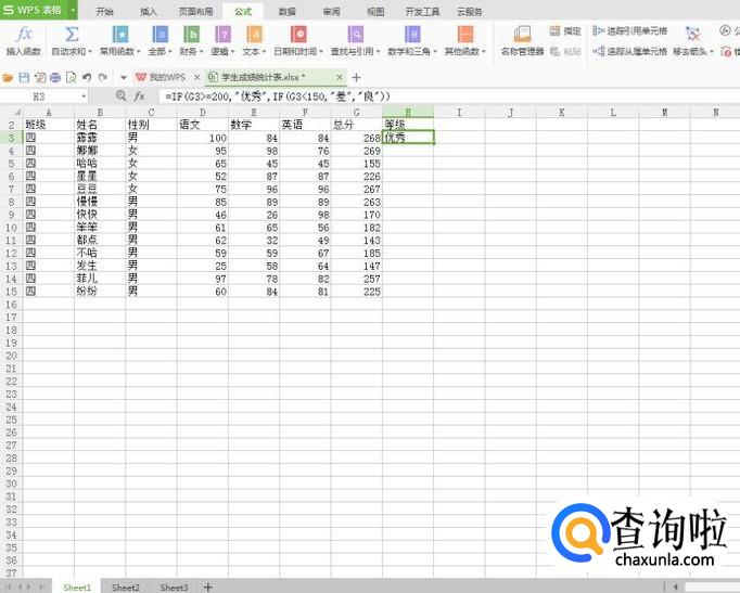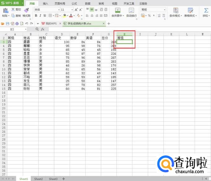 将光标放在第一个成绩等级右下角,向下拉,即可得到所有的分数等级,如图