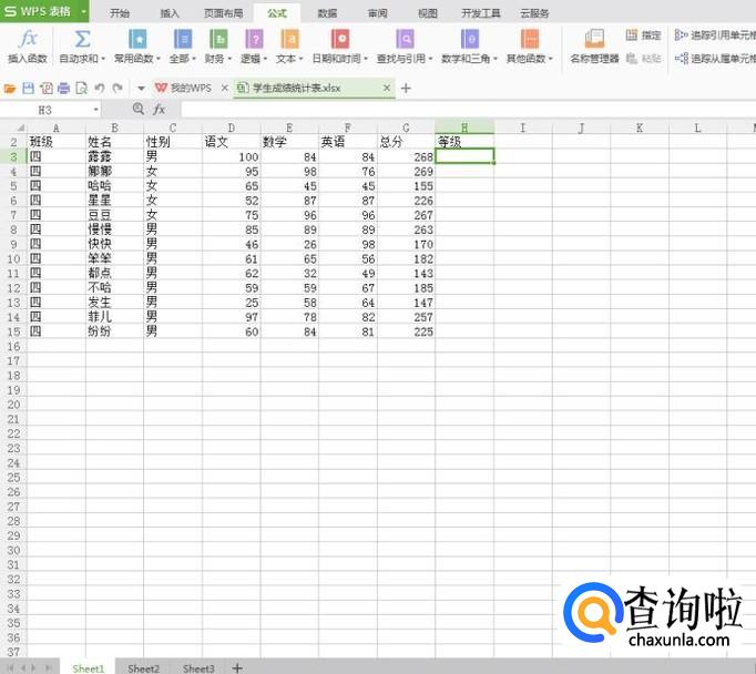 点击菜单栏(最上方)中的“公式”,在该选项卡下点击“插入函数”