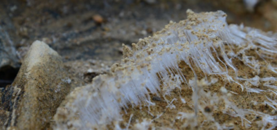 也许你见过霜柱,霜柱的顶端总是顶着一些红土。这是因为土壤里渗出来的水结冻后就往上顶,久而久之,霜柱就把红土砂粒顶起来了。当气温降至0℃以下时,霜柱就会不断地增高,有的甚至高达10厘米。