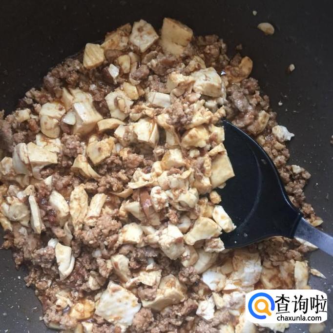 然后把之前烫好的豆腐倒入锅中,翻炒两分钟。