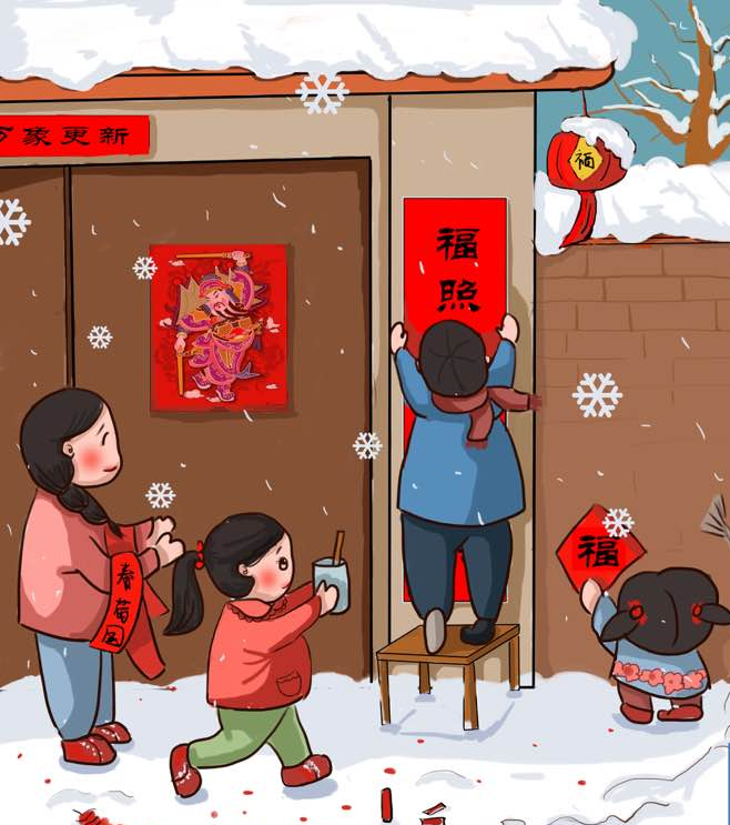 为了祈求一家的福寿康宁,一些地方的人们还保留着贴门神的习惯。据说,大门上贴上两位门神,一切妖魔鬼怪都会望而生畏。