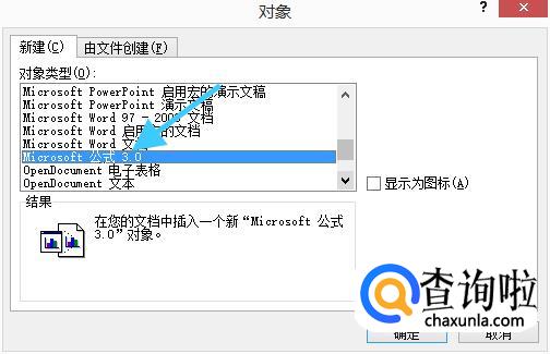 在打开的对象界面中,选择“Microsoft公式3.0”。如下图:
