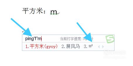 可以通过输入法,打出平米方的符号,比如搜狗五笔输入法,依次输入平方米的四个键,选择3就可以输入平方米的符号了。如下图: