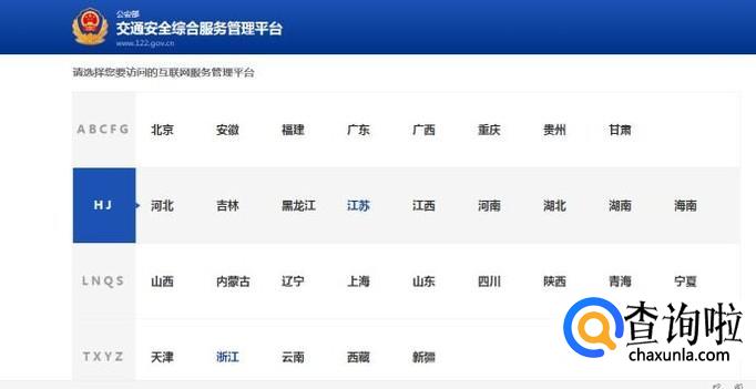 登陆12123的网站首页,选择你所在的城市