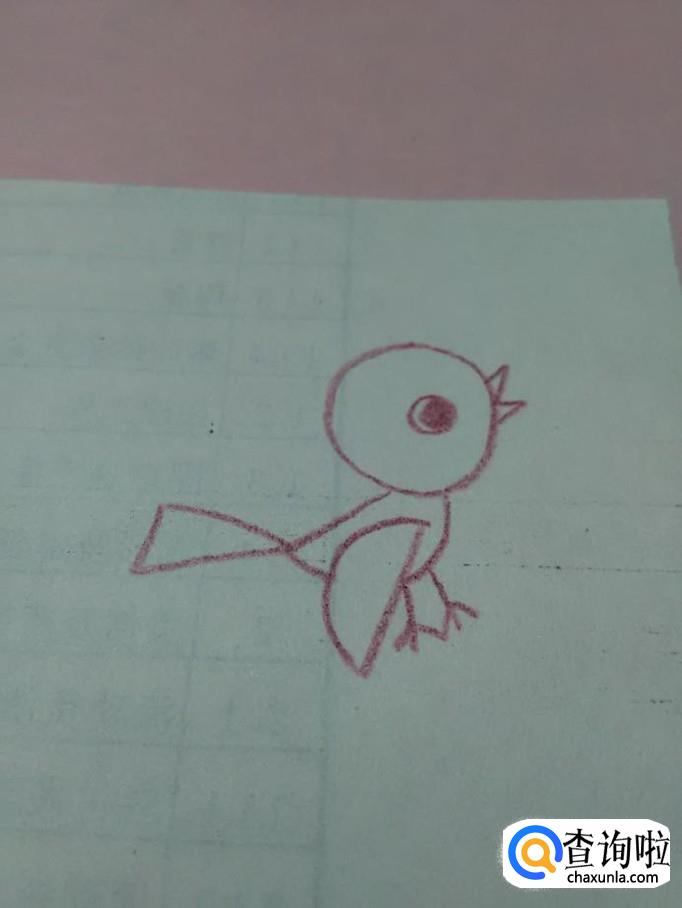 在身体的下方,画两个小字,表示爪子,小鸟就画完了。