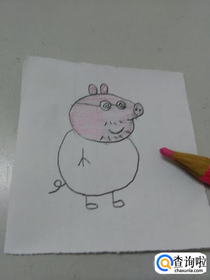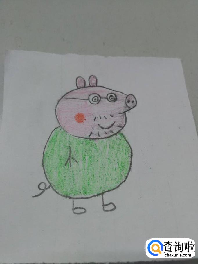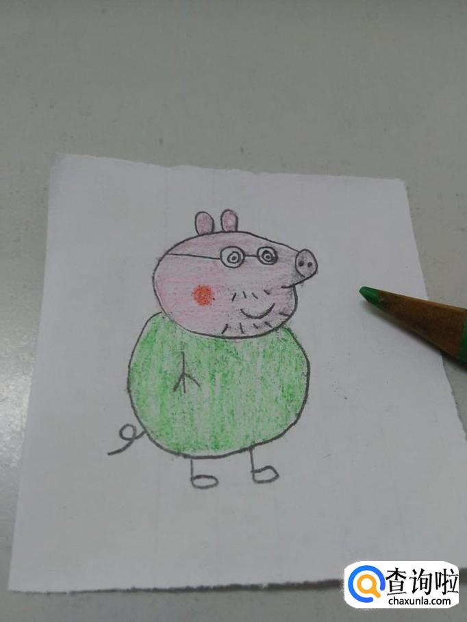 用绿笔涂身体。猪爸爸就画完了。