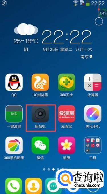 首先,我们打开我们的三星手机,然后我们点击手机桌面上的照相机;