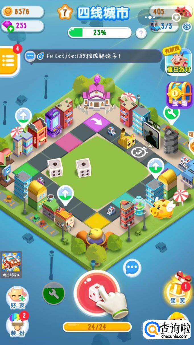 损友圈是需要玩家点击下方的丢骰子进行游戏金币的获得,以此来建造城市升级。