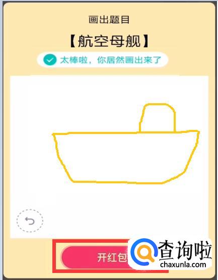 最后画上航母的底部,看起来有点像梯形,这样发现提示画对了,点击开红包即可。