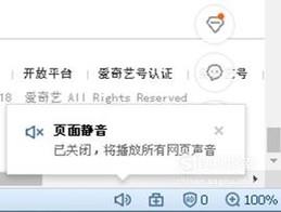 我们先看一看网页底部右下角的喇叭图标是什么状态,如果是打叉号,就是网页声音被关闭了,点击喇叭就可以打开。