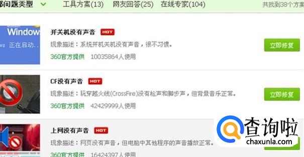 会看到有一项“上网没有声音”,点右边的“立即修复”。
