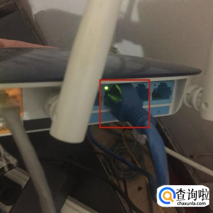 接着把这根网线的另一端的水晶头插入路由器的wan口,如下图所示。