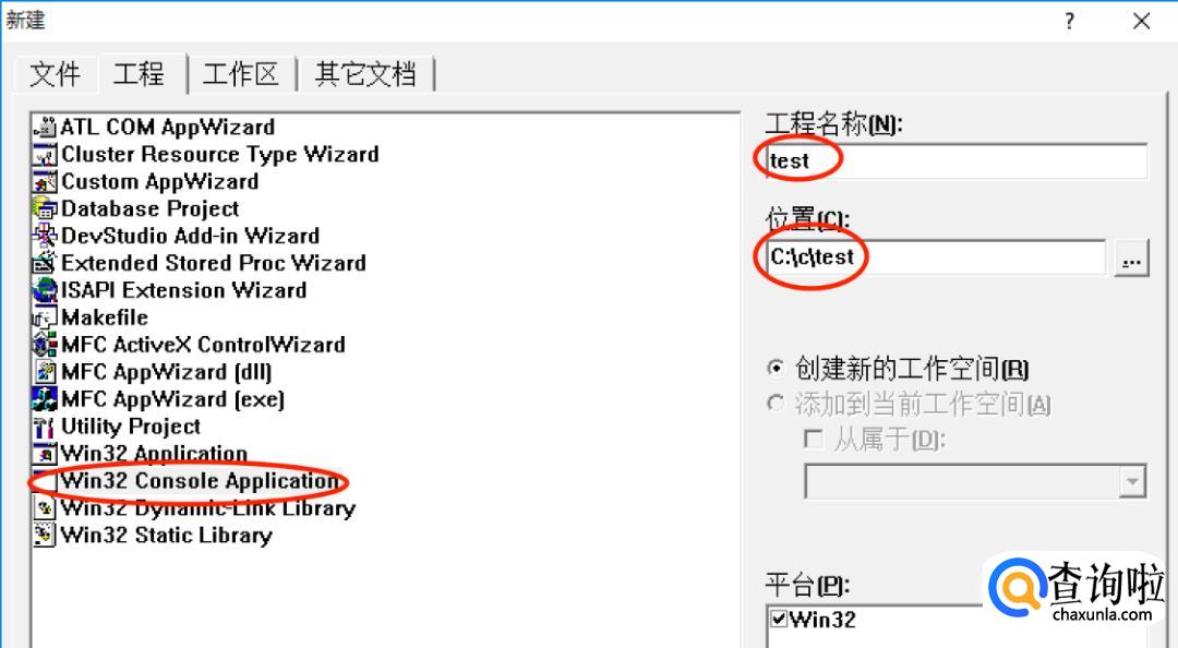 由于早期学习只需要控制台应用程序,我们选择Win32 Console Application。
