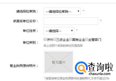 进入申请页面之后,我们就要填写单位的名称了,要注意选择检察院的时候,不要选错了,一般是注册地的检察院,然后再上传营业执照等。