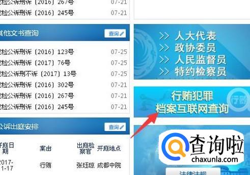首先我们打开成都市人民检察院的官网,在官网中找到“行贿犯罪档案互联网查询”的板块,点击进入(也可以直接输入:http://www.cdjcy.gov.cn:8010/)