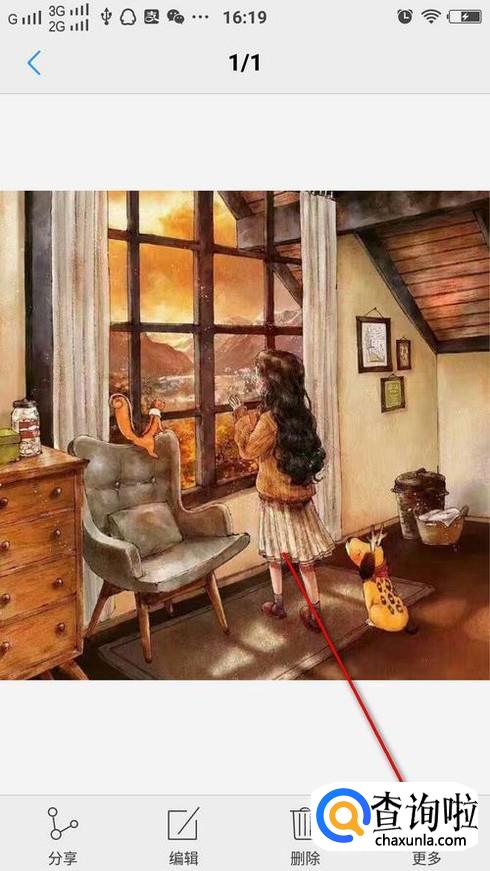 点击图片打开,在图片的下方有4个选项,点击“更多”;
