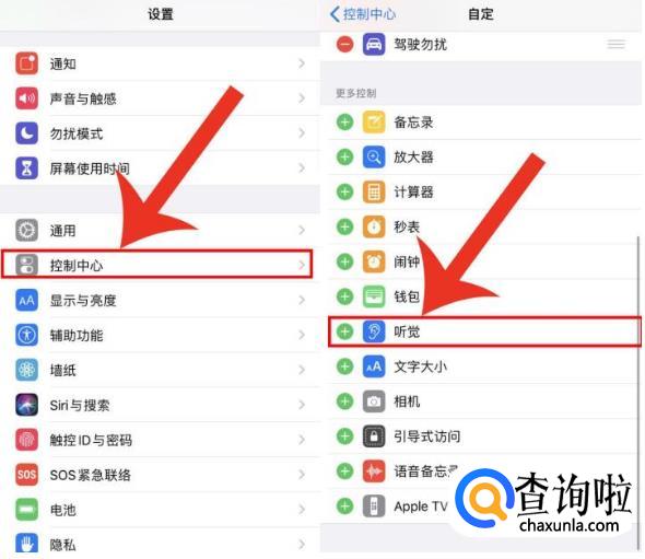 设置→控制中心→自定控制→找到听觉→点击左边的“+”号即可添加了
