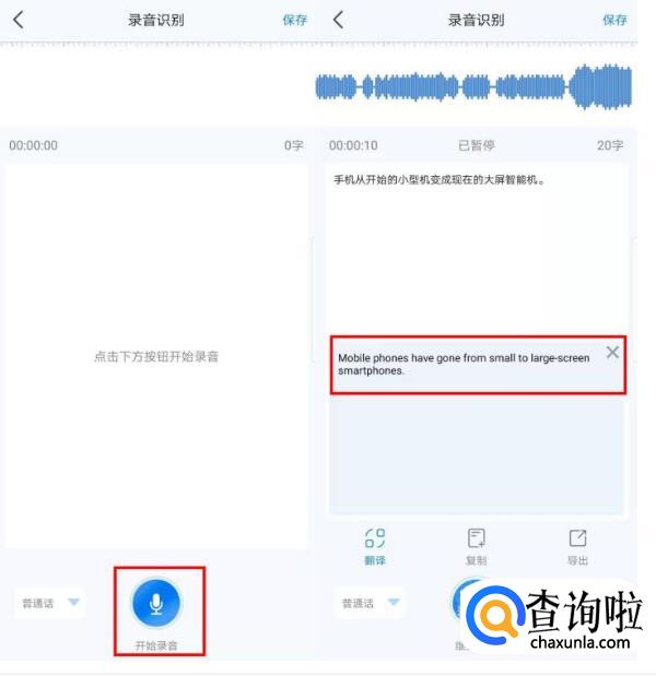 在将蓝牙耳机放到听筒附近,最后点击开始录音,工具就会将听到的语音转为文字记录下来,并且英语也能实时转为文字哦。